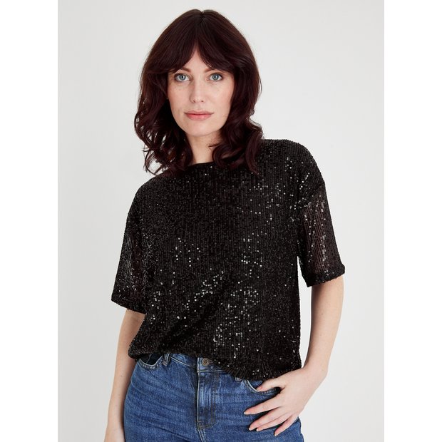 Black sequin on sale tops uk