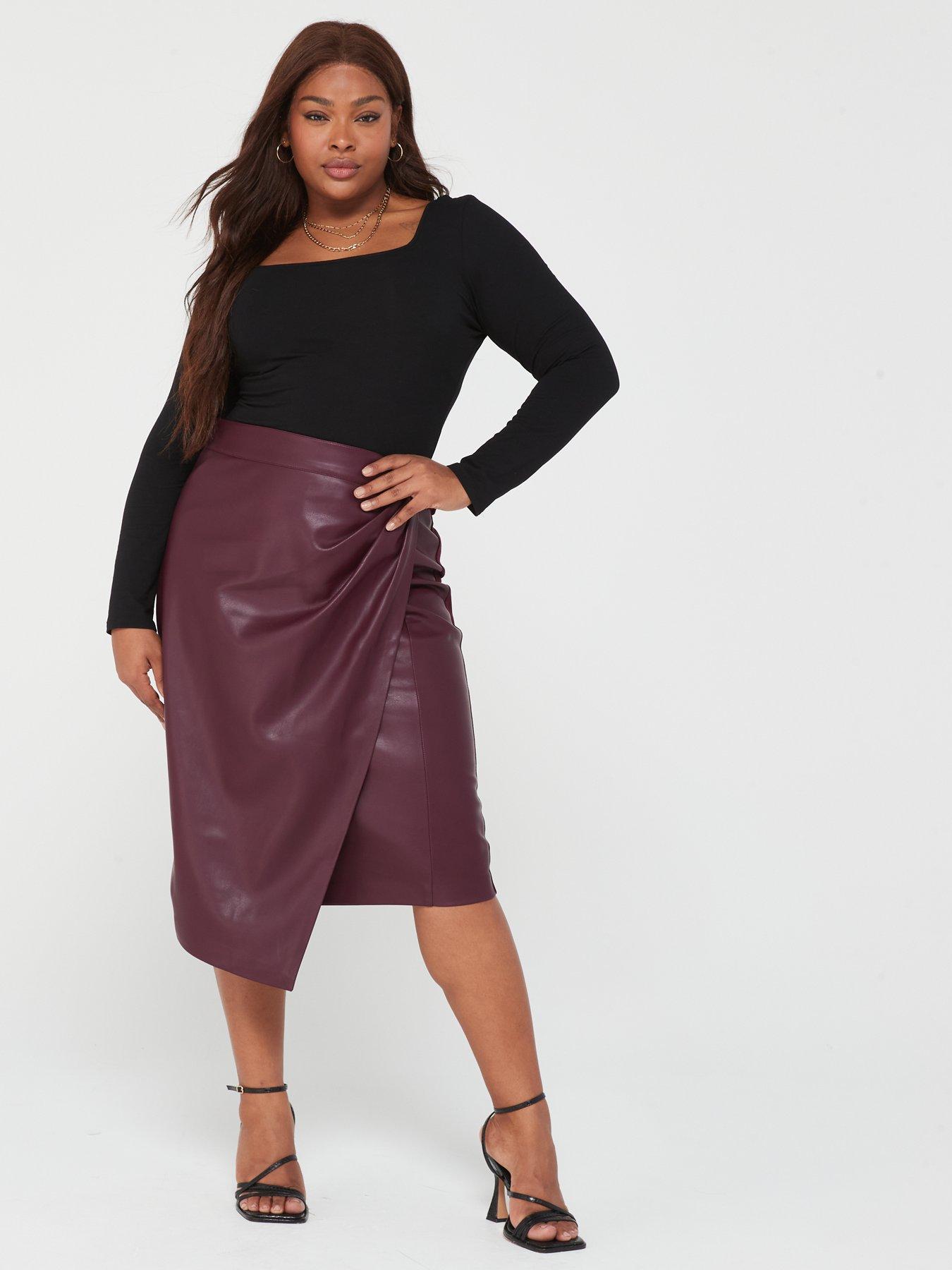 Brown leather on sale wrap skirt