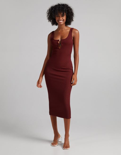 Burgundy bodycon on sale midi dress