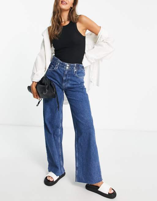 Button wide on sale leg jeans