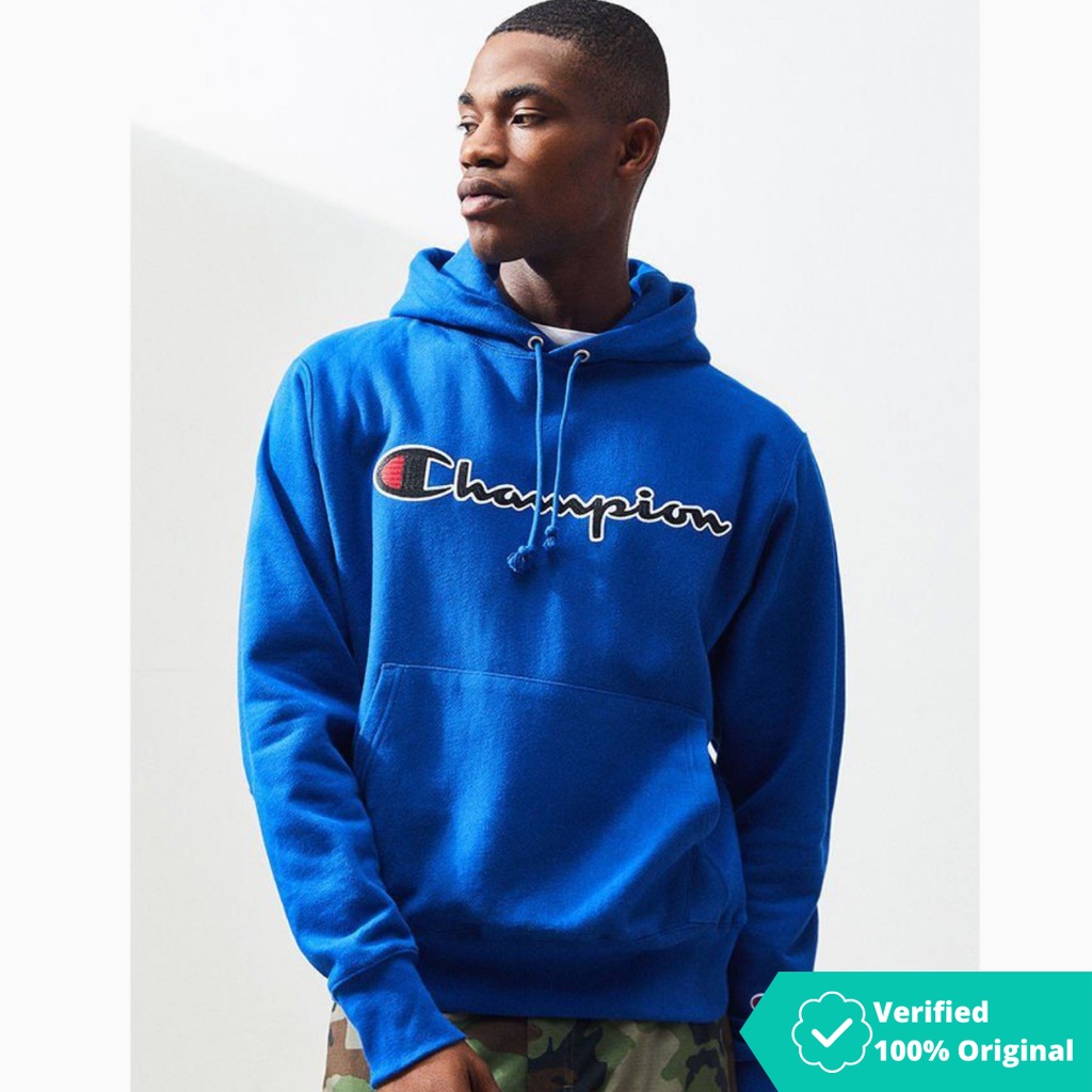 Champion reverse weave chain stitch logo dusted blue on sale womens hoodie