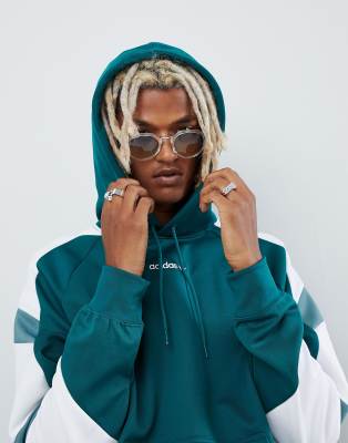 Adidas eqt hoodie with striped sleeves on sale in green