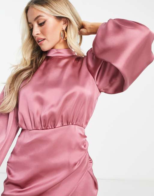 Dollar frills wrap front on sale satin mini dress in blush