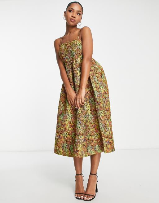 Floral jacquard on sale midi dress