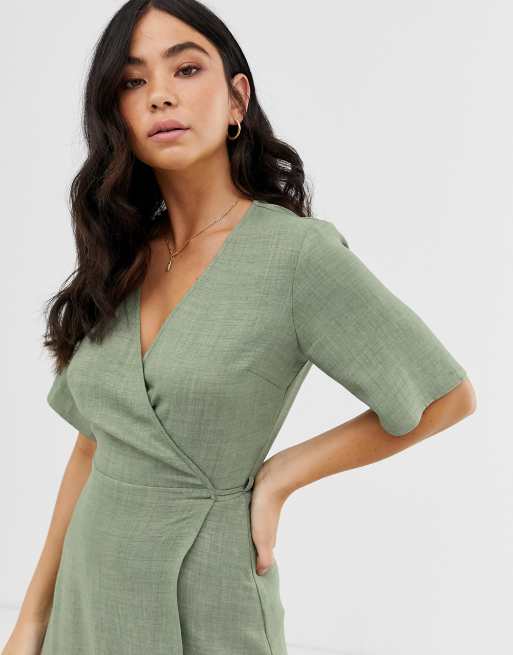 Green linen on sale wrap dress