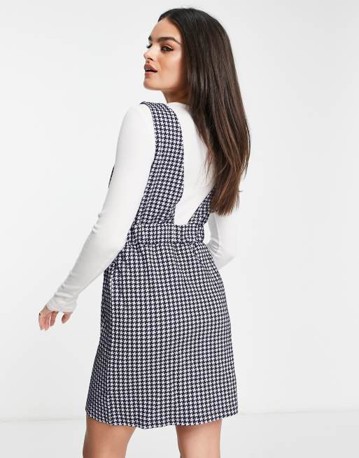 Grey check button on sale up pinafore mini dress