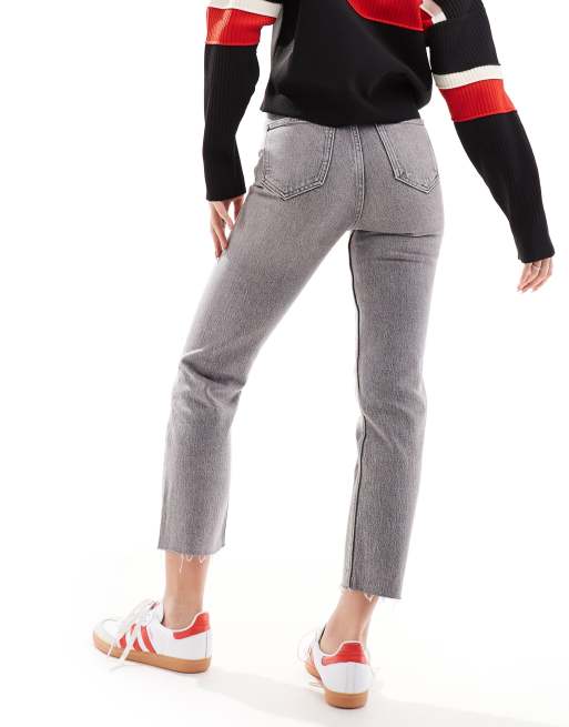 High waist raw on sale hem straight leg jeans