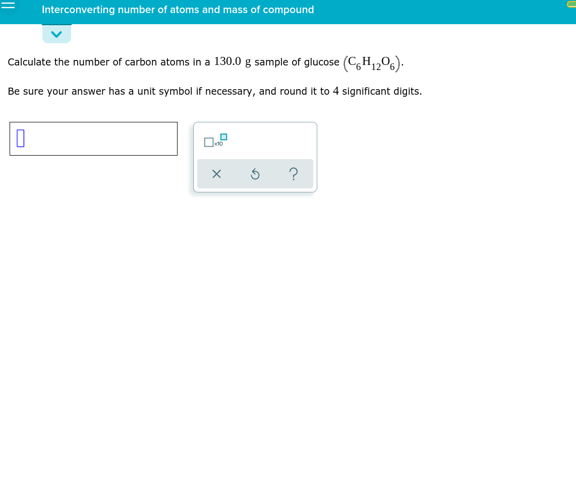 Interconverting number of atoms and mass on sale of compound