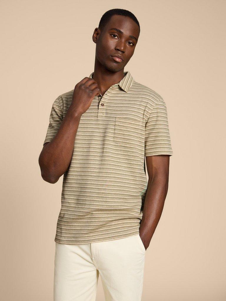 Mens green striped on sale polo shirt
