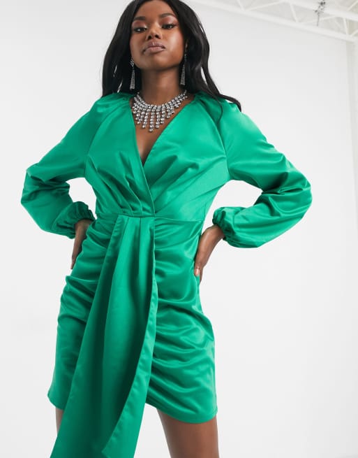 Missguided green on sale satin dress