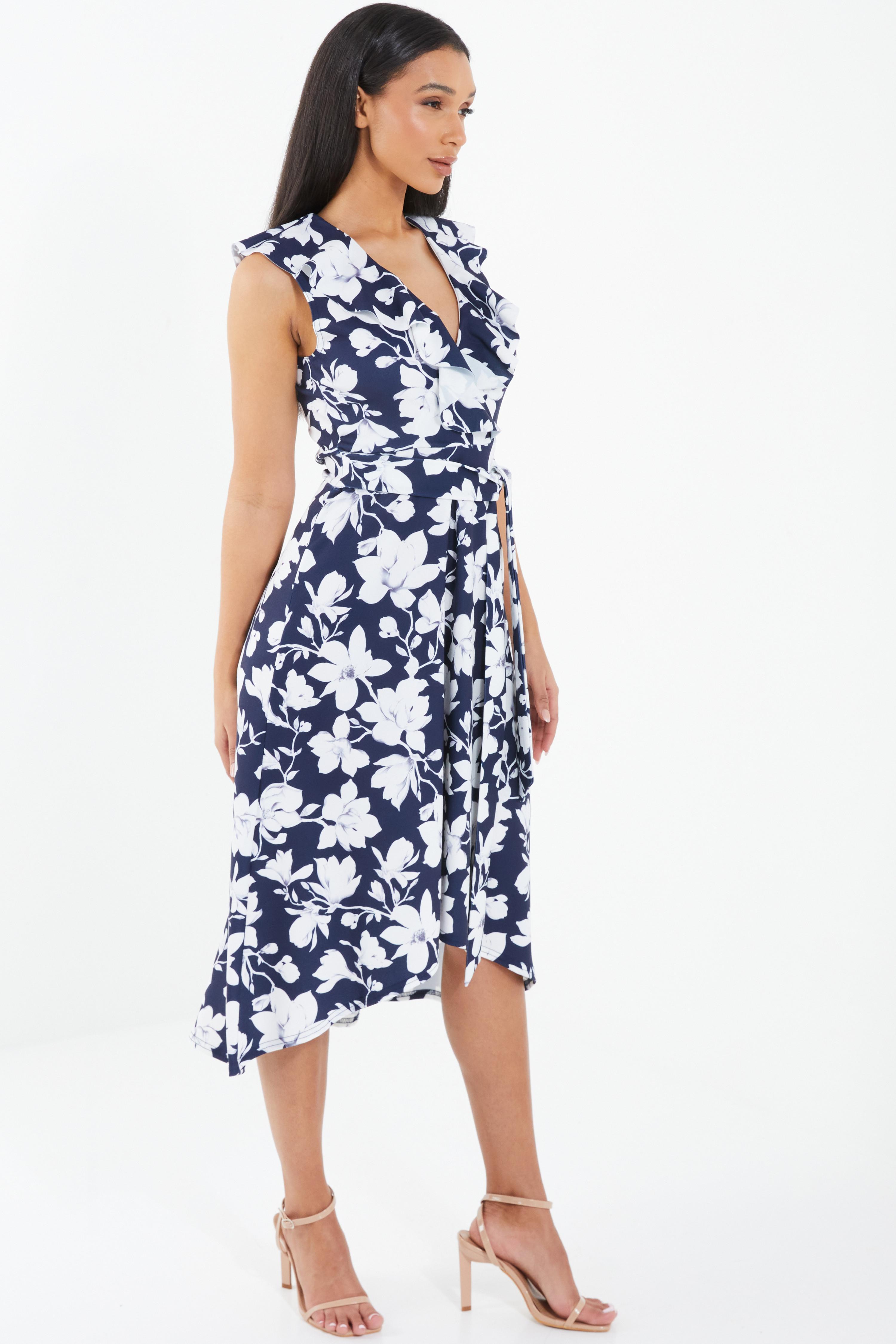 Navy floral dip on sale hem dress