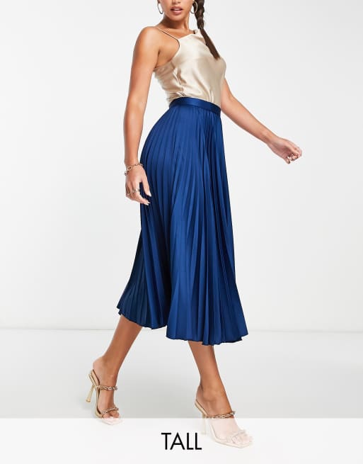 Navy pleated on sale silk skirt