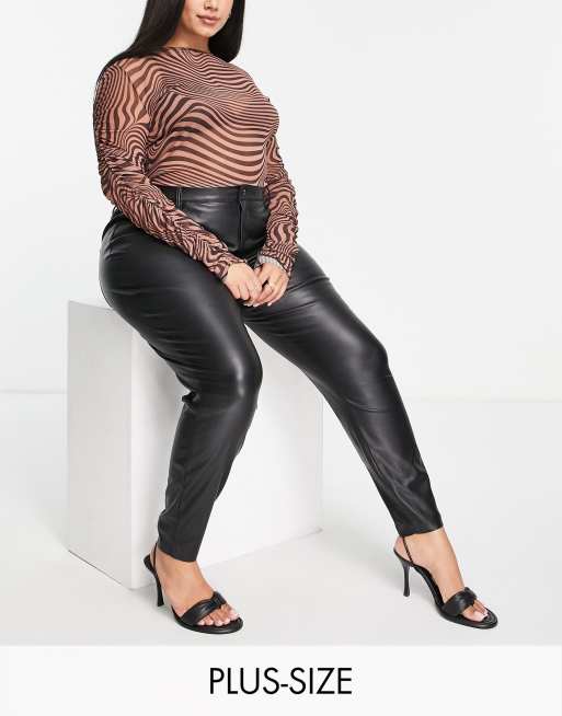 Plus size black on sale faux leather pants