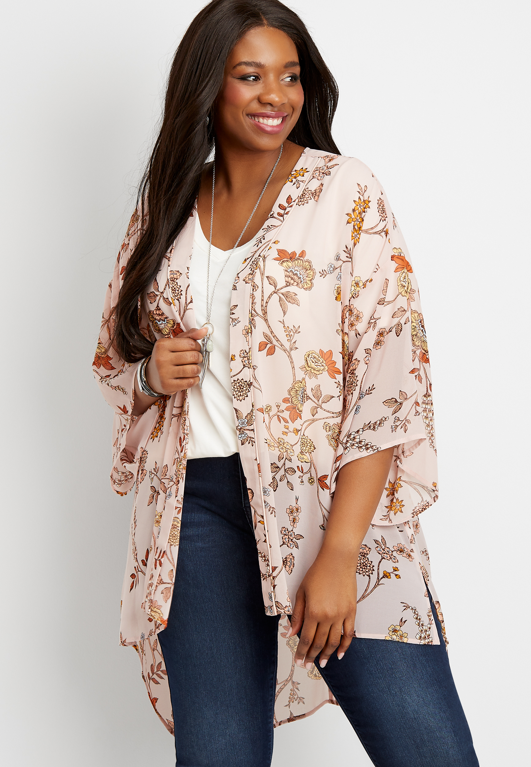 Plus size floral on sale kimono cardigan
