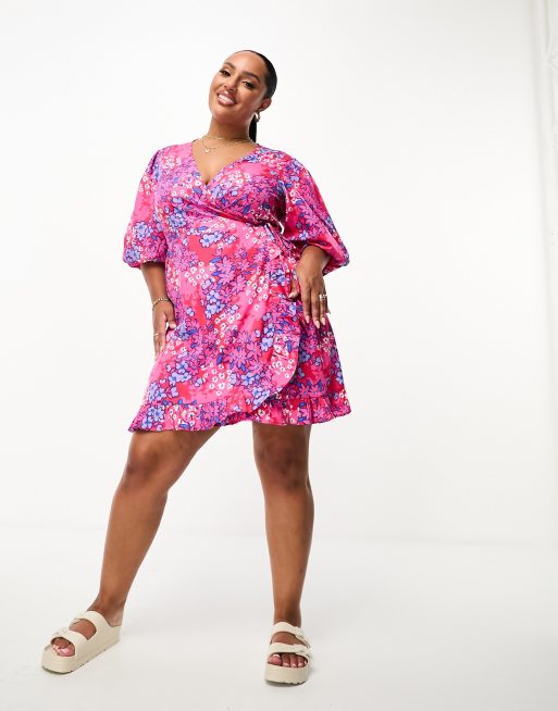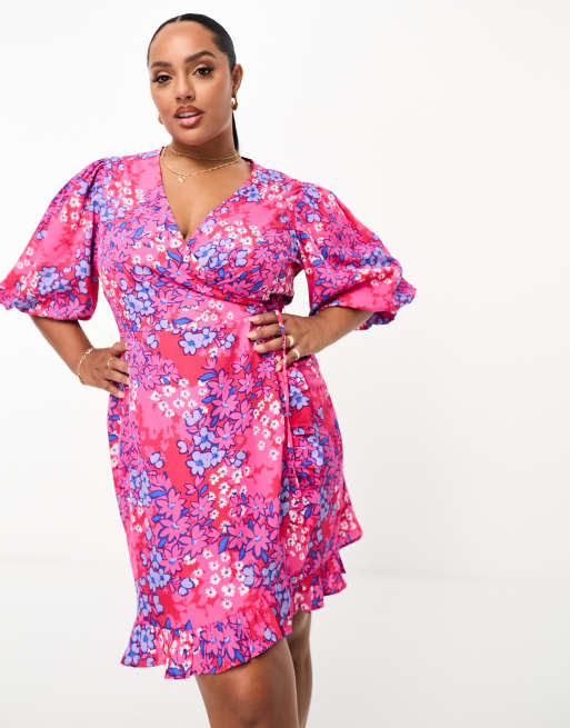 Plus size pink on sale and blue dress