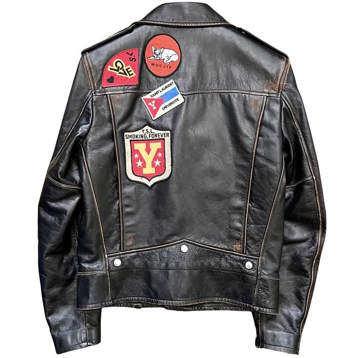 Saint laurent patch on sale leather jacket