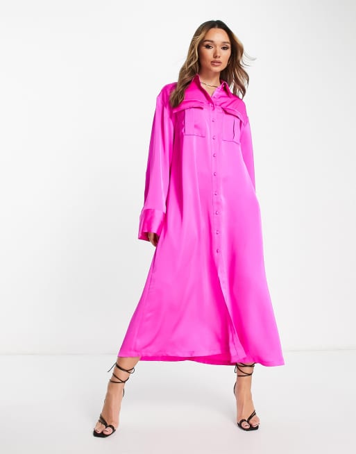 Satin maxi on sale shirt dress