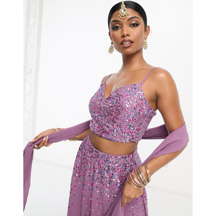 Sequin crop top on sale and maxi skirt set