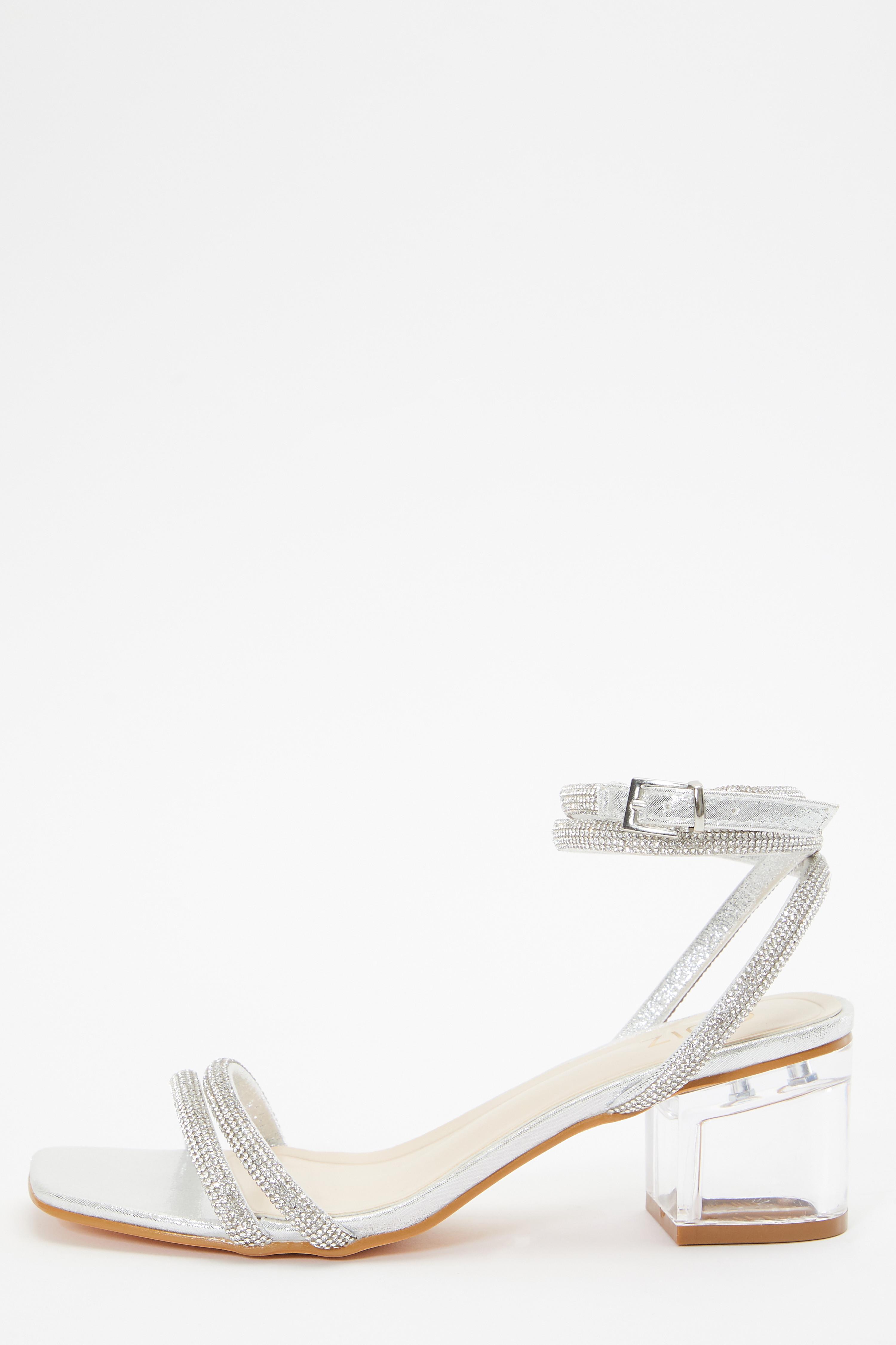 Product Item: Silver diamante low on sale heel sandals