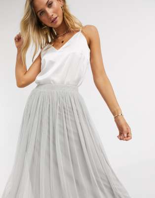 Tulle maxi on sale skirt gray