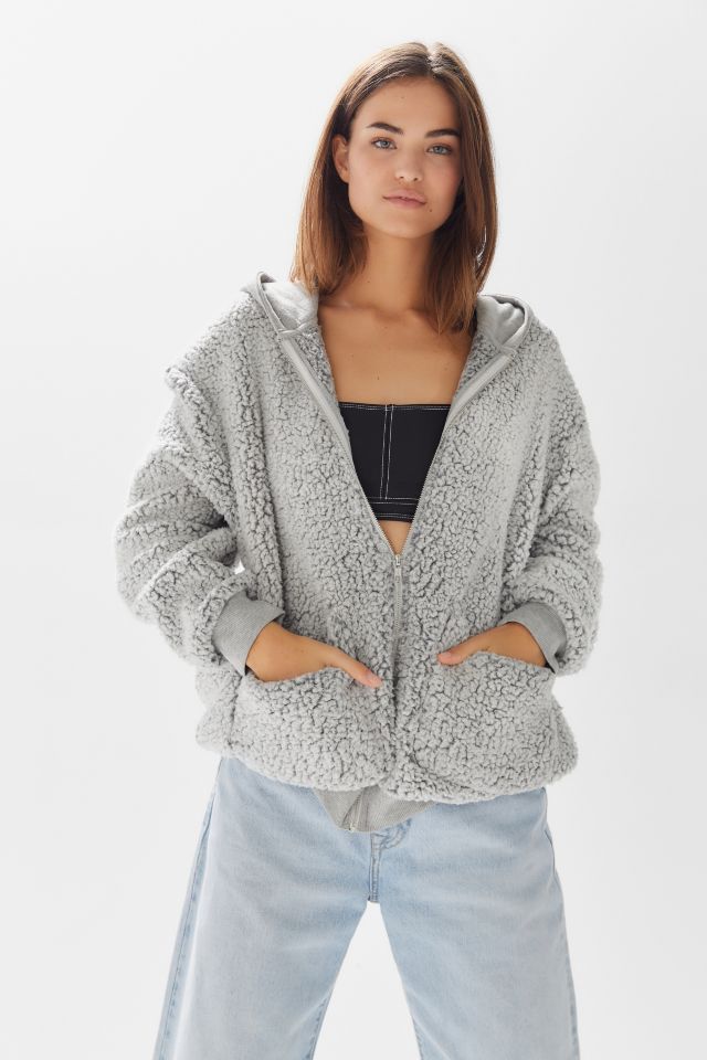 Urban outfitters wilma hooded zip front on sale teddy jacket