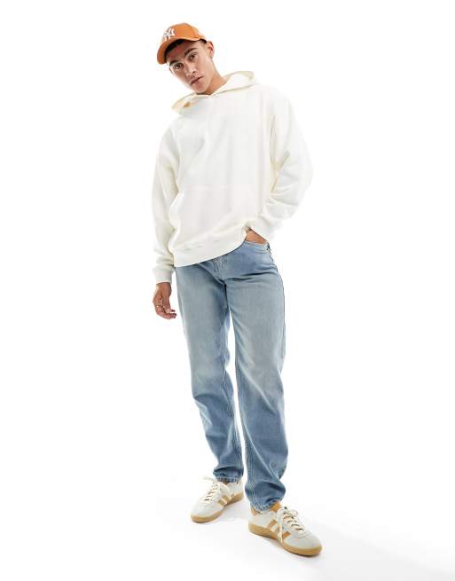 White hoodie on sale blue jeans