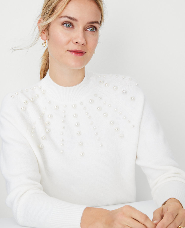 White sweater on sale with pearls