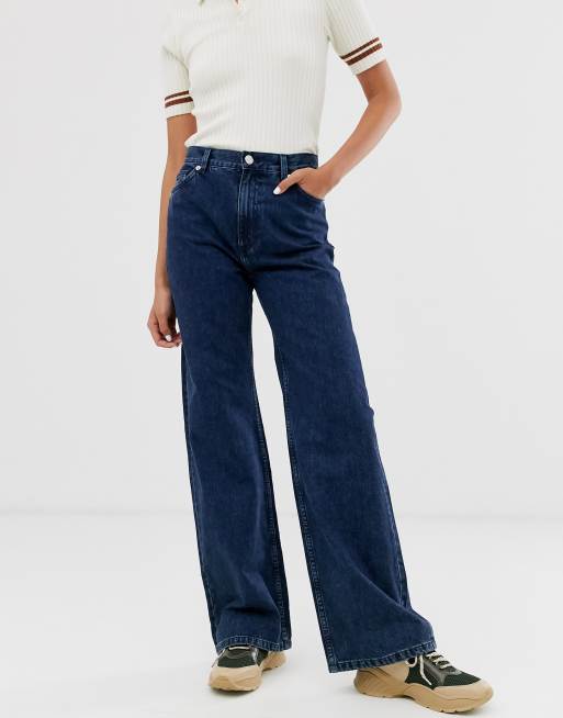 Wide leg dark on sale blue jeans
