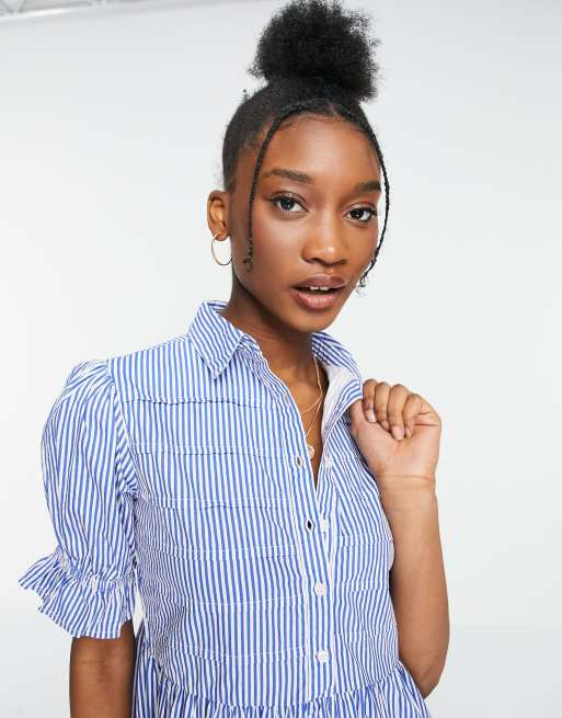 Asos blue and on sale white striped dress