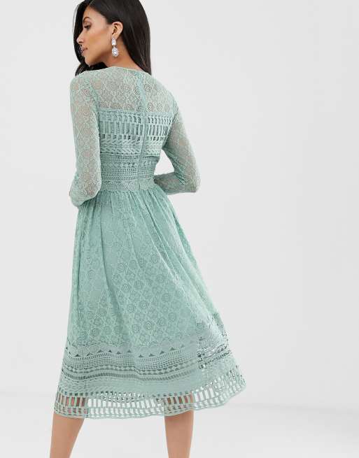 Asos design premium on sale lace midi skater dress