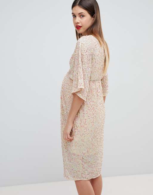 Asos design scatter sequin on sale knot front kimono midi dress