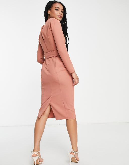 Asos design split sleeve on sale midi dress with obi belt