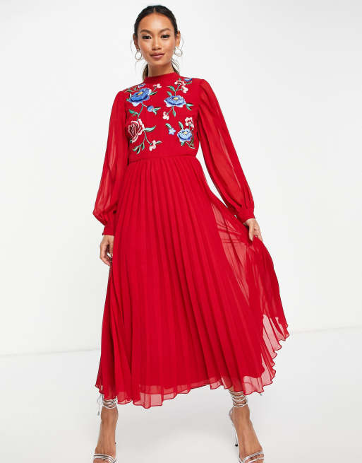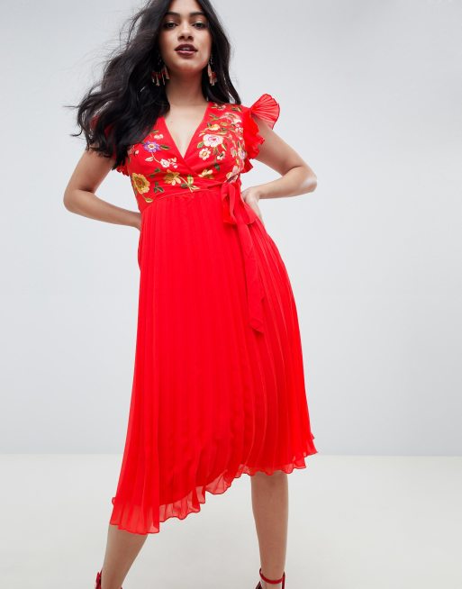Asos red on sale embroidered dress