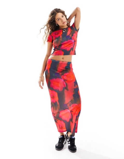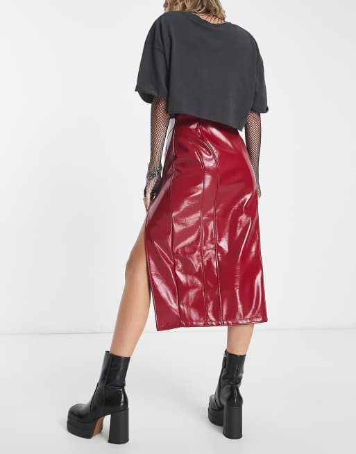 Asos red on sale midi skirt