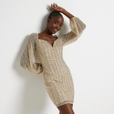 Beige on sale embellished dress
