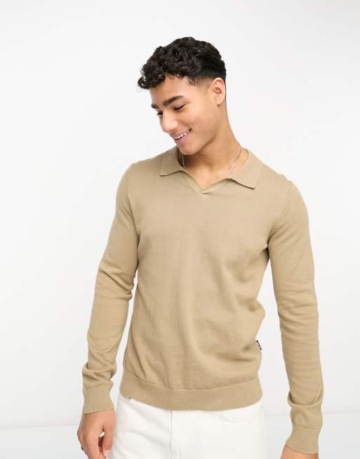 Beige long sleeve on sale polo shirt