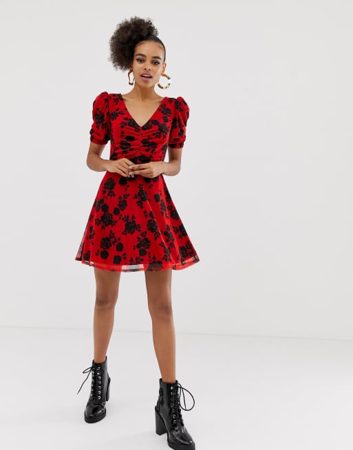 Black and red on sale floral skater skirt