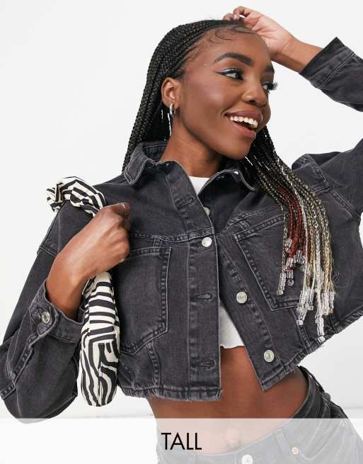 Black cropped denim on sale jacket topshop