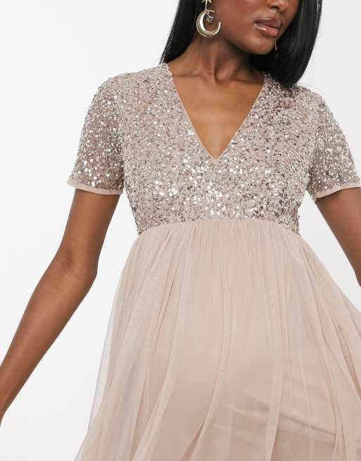 Maternity v neck maxi tulle dress with tonal on sale delicate sequins