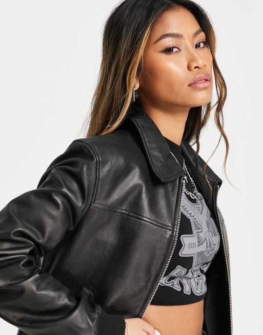 Women's genuine leather on sale bomber jackets