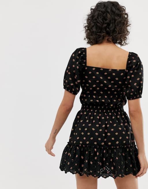 Asos design sweetheart broderie on sale mini dress with elasticated waist